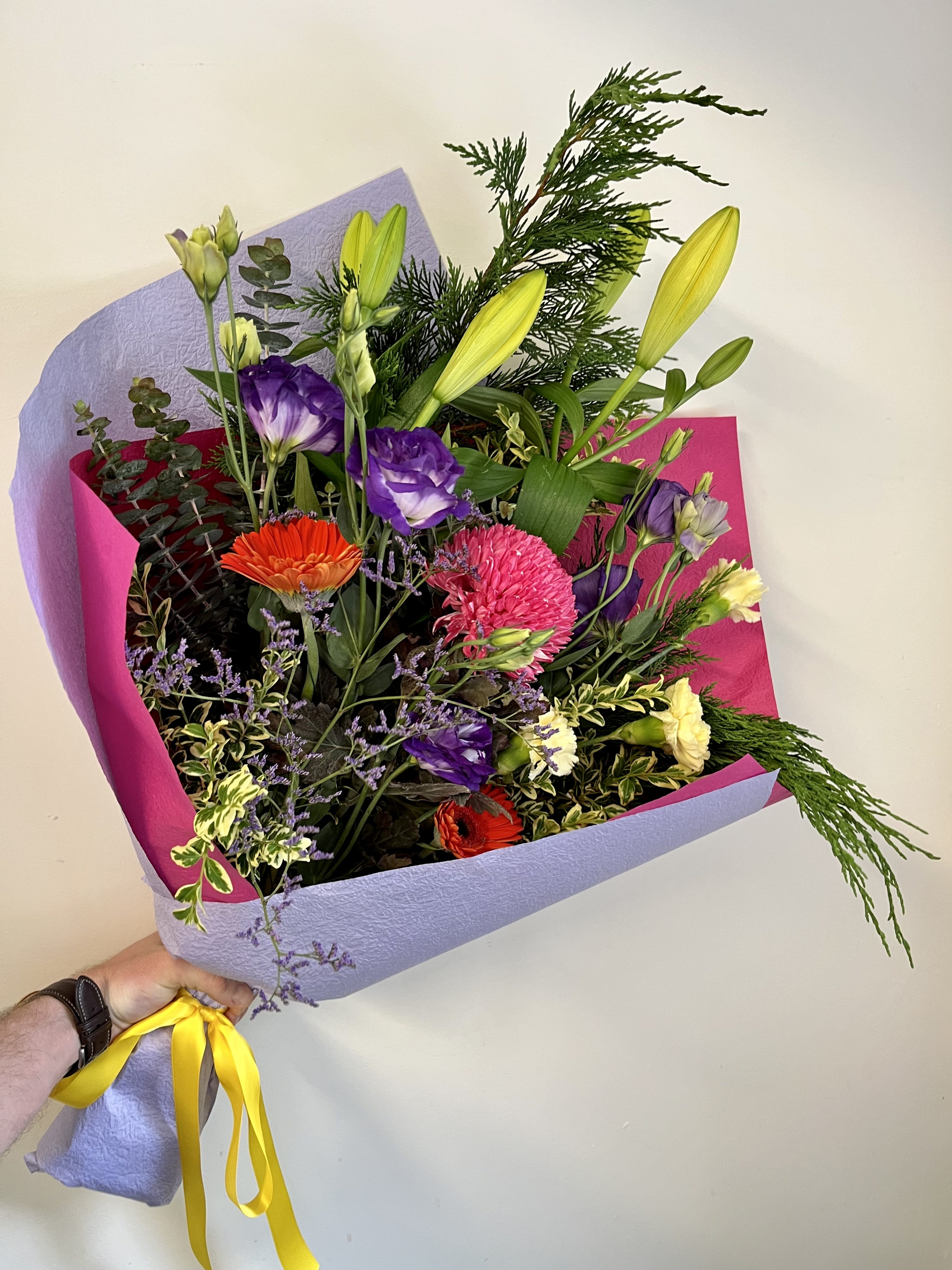*Please note: We always use the freshest flowers available – sometimes we may need to seasonally change the blooms in some products. Every bouquet is different as we work with natural product and seasons, but we try our best to create a similar style or colour palette as pictured and described, and work on an incremented valued basis – your bouquet will not be identical to any one bouquet pictured as it is its own individual creation*